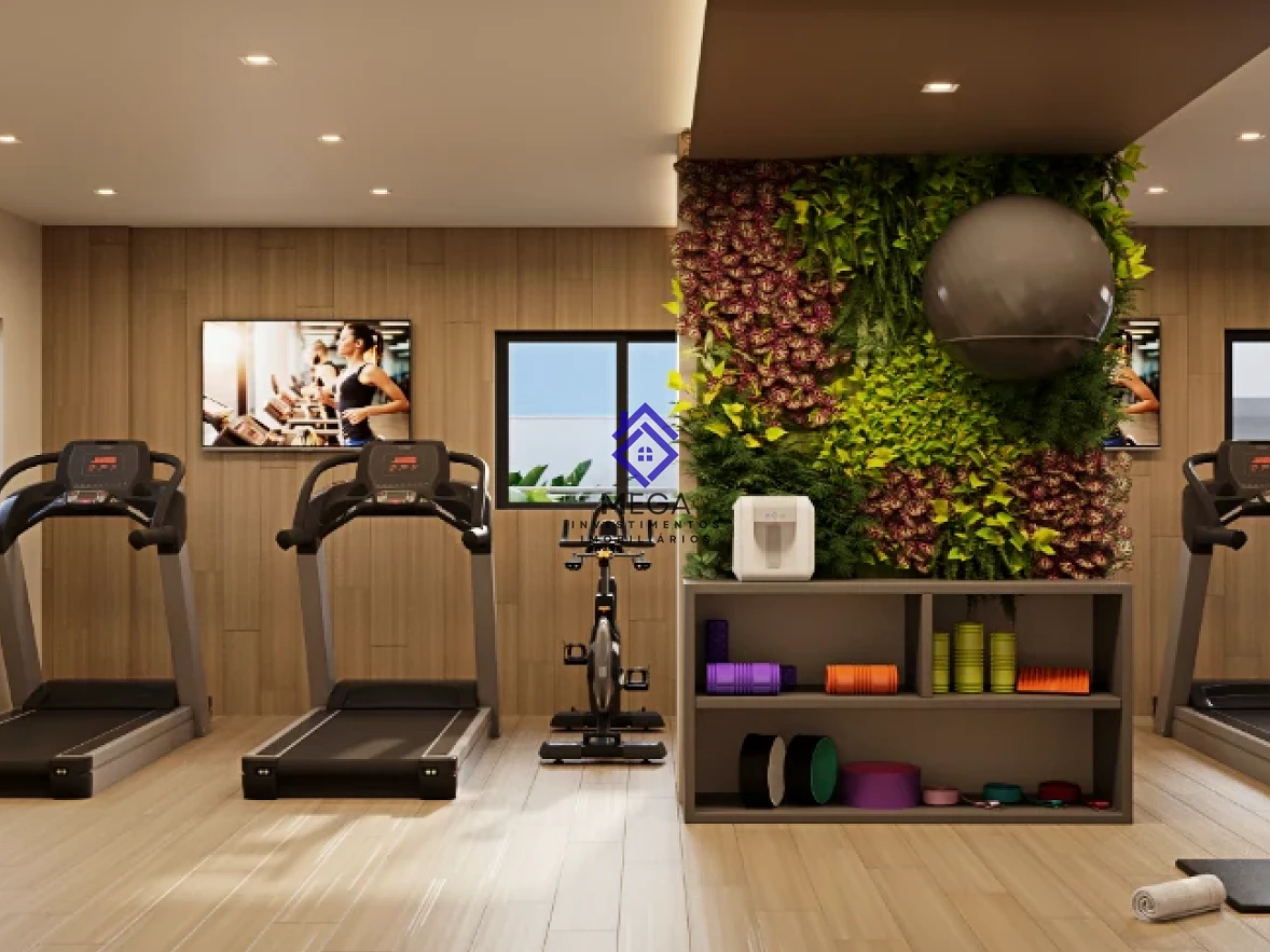 O condomínio fechado conta com infraestrutura completa incluindo piscina, academia, salão de festas e churrasqueira. Sistema de segurança com câmeras e portaria 24 horas garantem tranquilidade aos moradores. Empreendimento com entrega prevista para 2028.