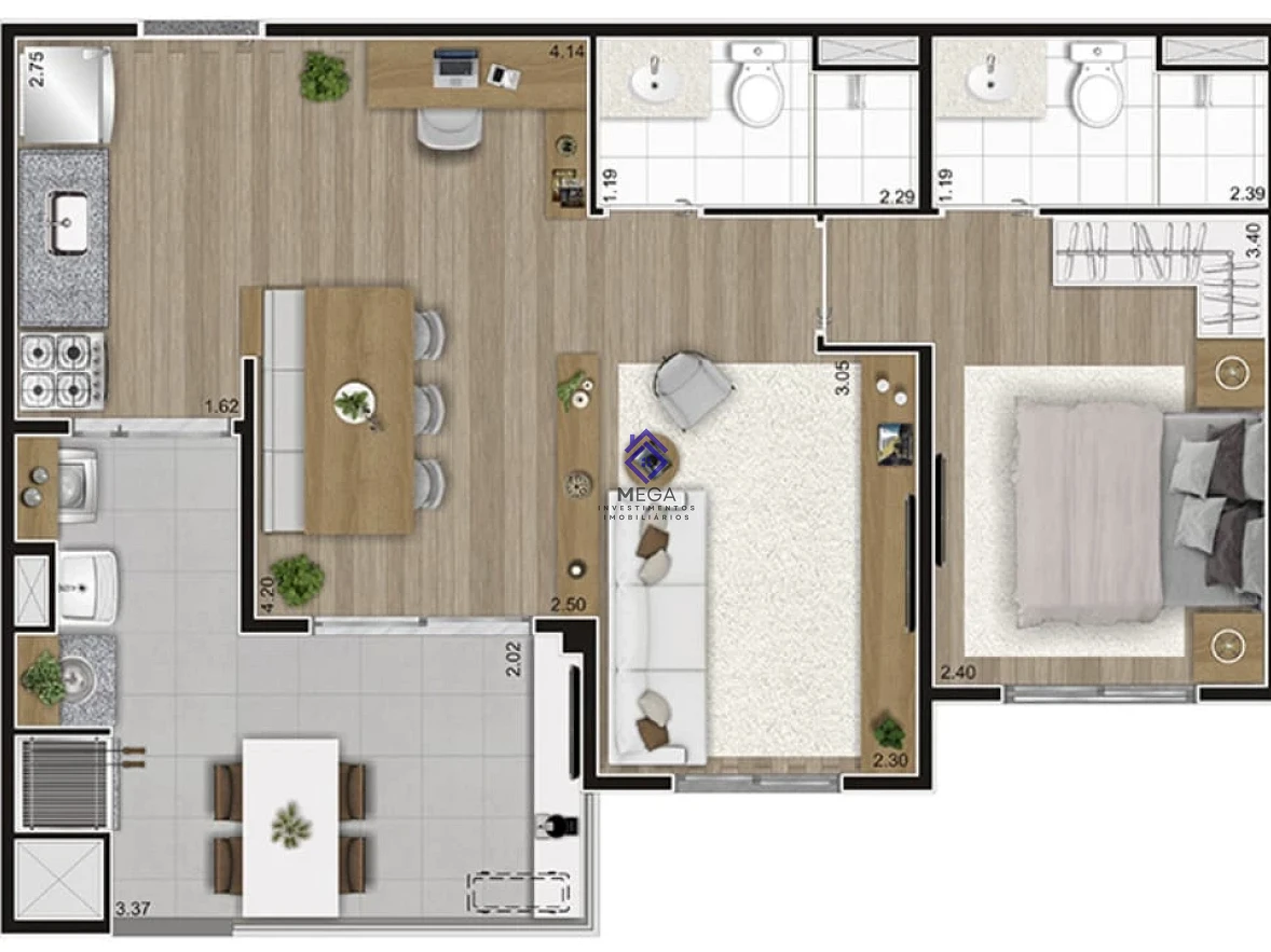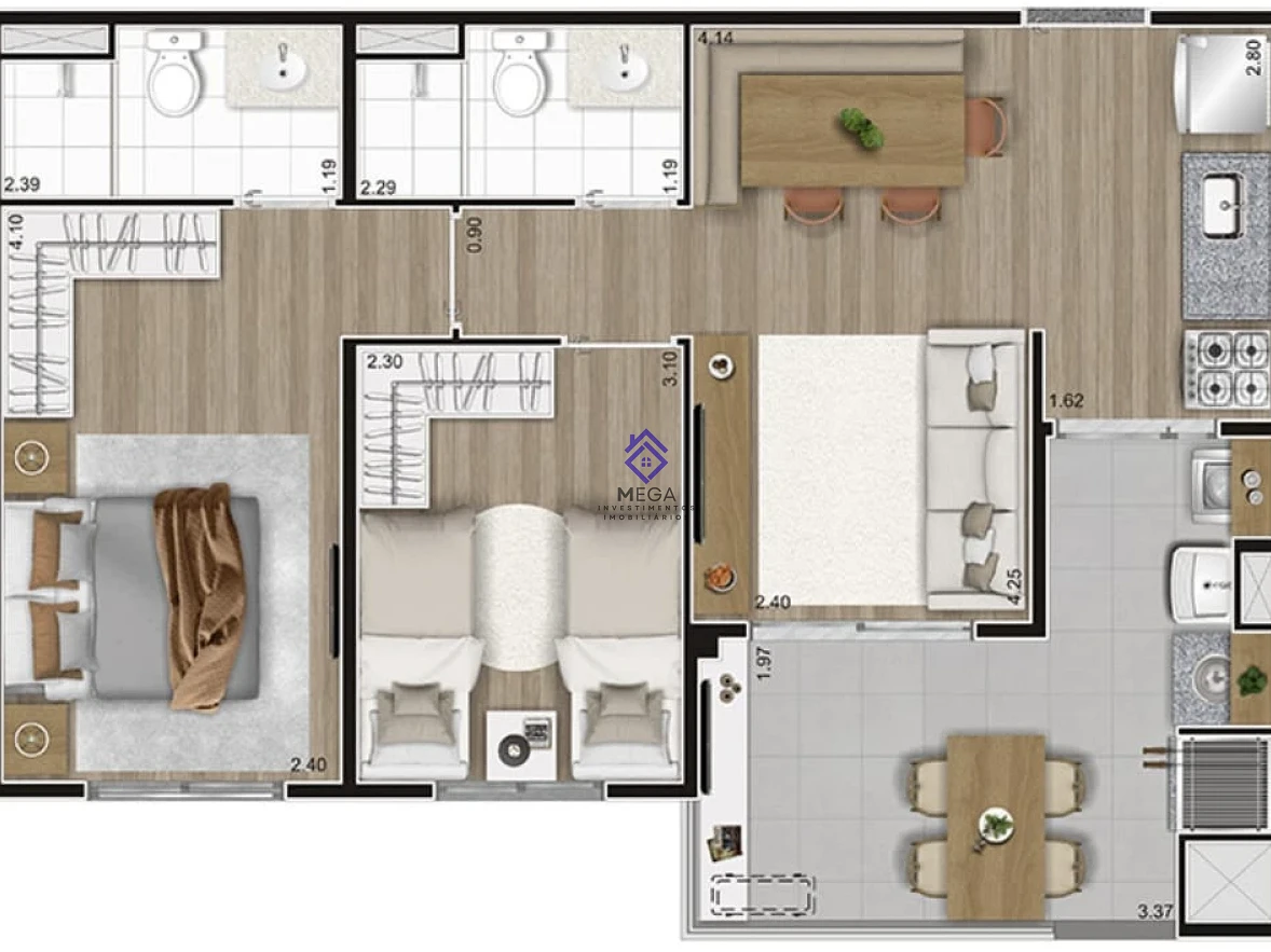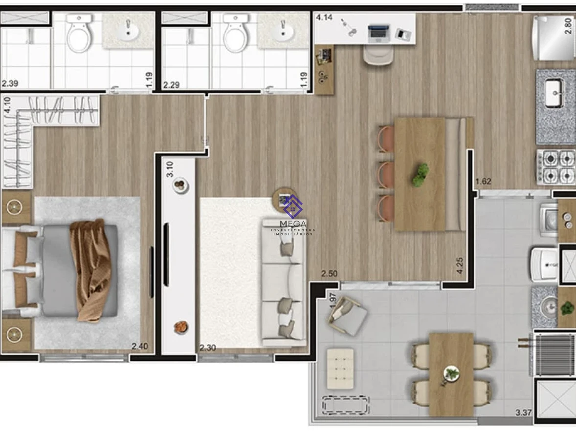 Apartamento em Água Branca, São Paulo com 54m² e entrega para 2028. O imóvel possui 2 dormitórios com suíte bem distribuídos, 1 banheiro completo e 1 vaga de garagem coberta. O empreendimento Go Lapa oferece acabamentos modernos e planta otimizada para máximo aproveitamento dos espaços.