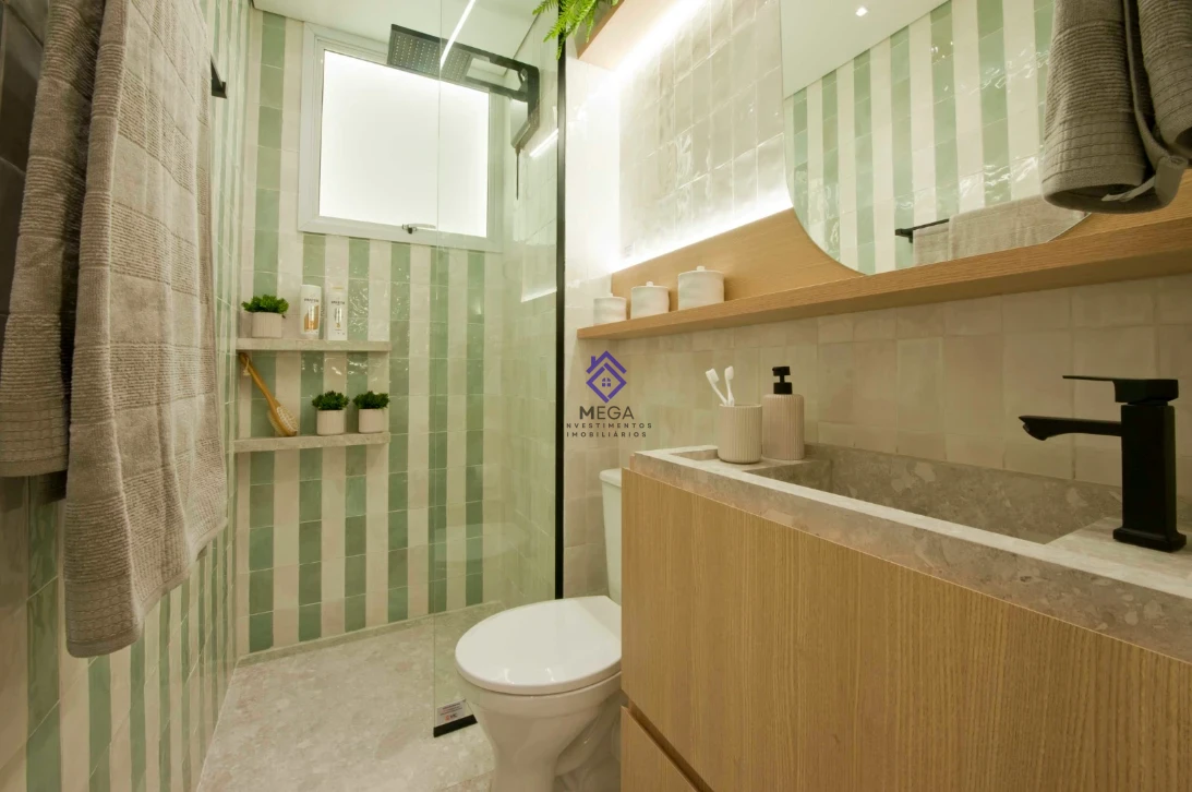 O condomínio fechado Gran Vic Lumen conta com infraestrutura completa incluindo academia e elevador. A segurança é garantida pelo sistema de condomínio fechado, proporcionando tranquilidade aos moradores. O empreendimento oferece facilidades modernas que valorizam o investimento no imóvel.