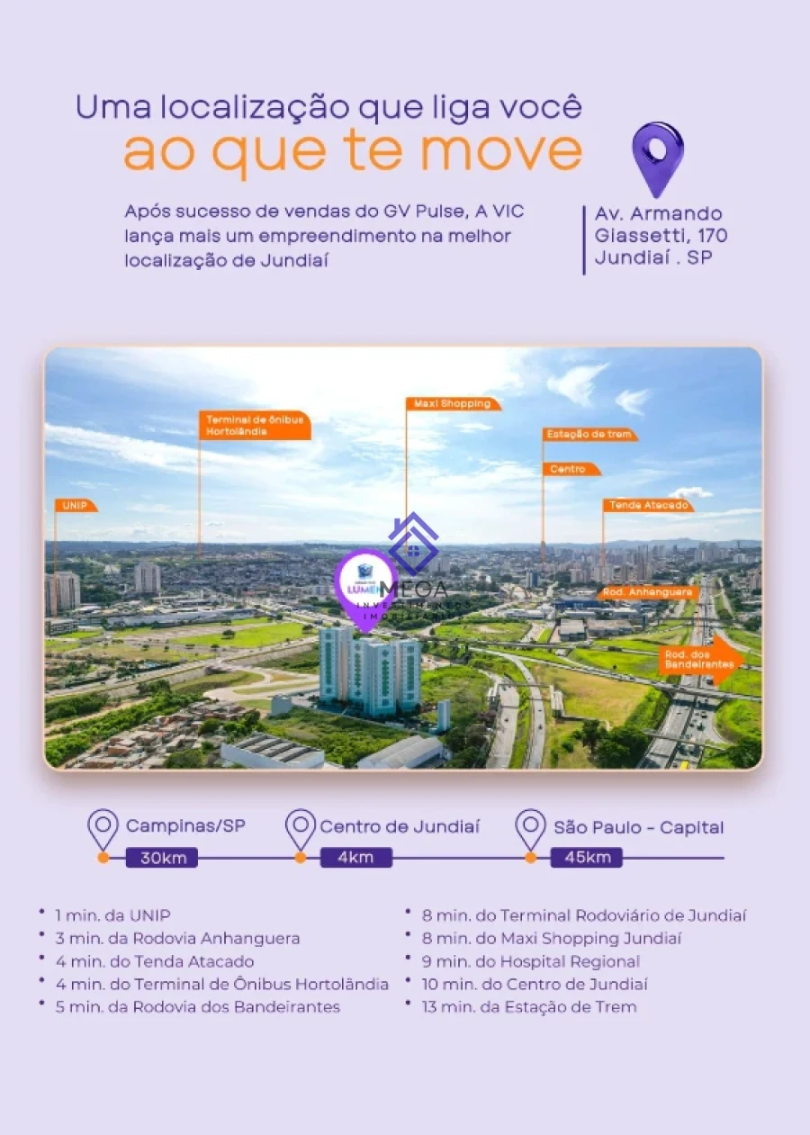 Apartamento 2 quartos em Jundiaí com 43m² e duas vagas de garagem. O imóvel possuí área privativa . Com entrega prevista para 2026.
