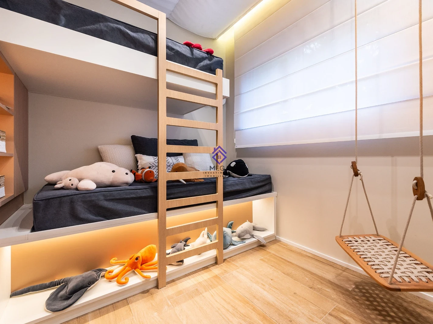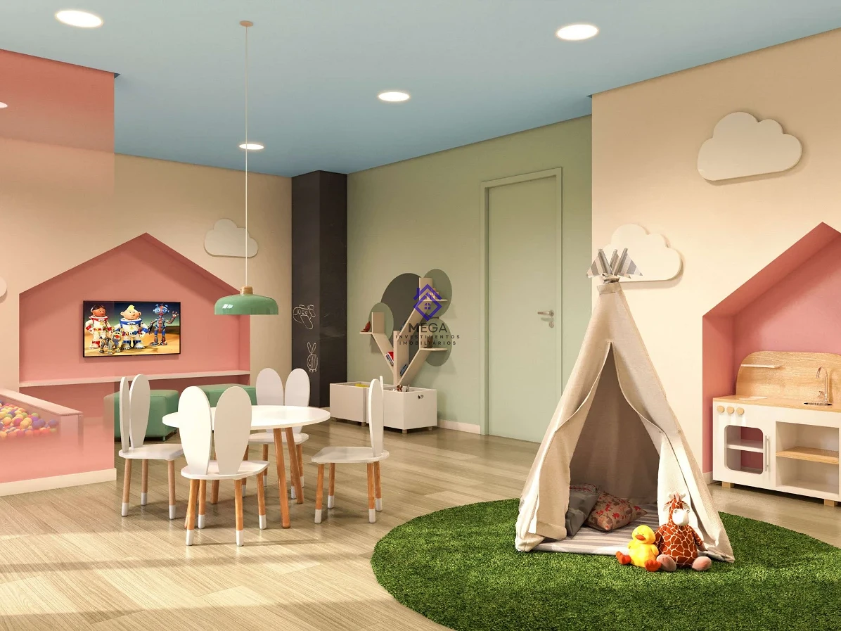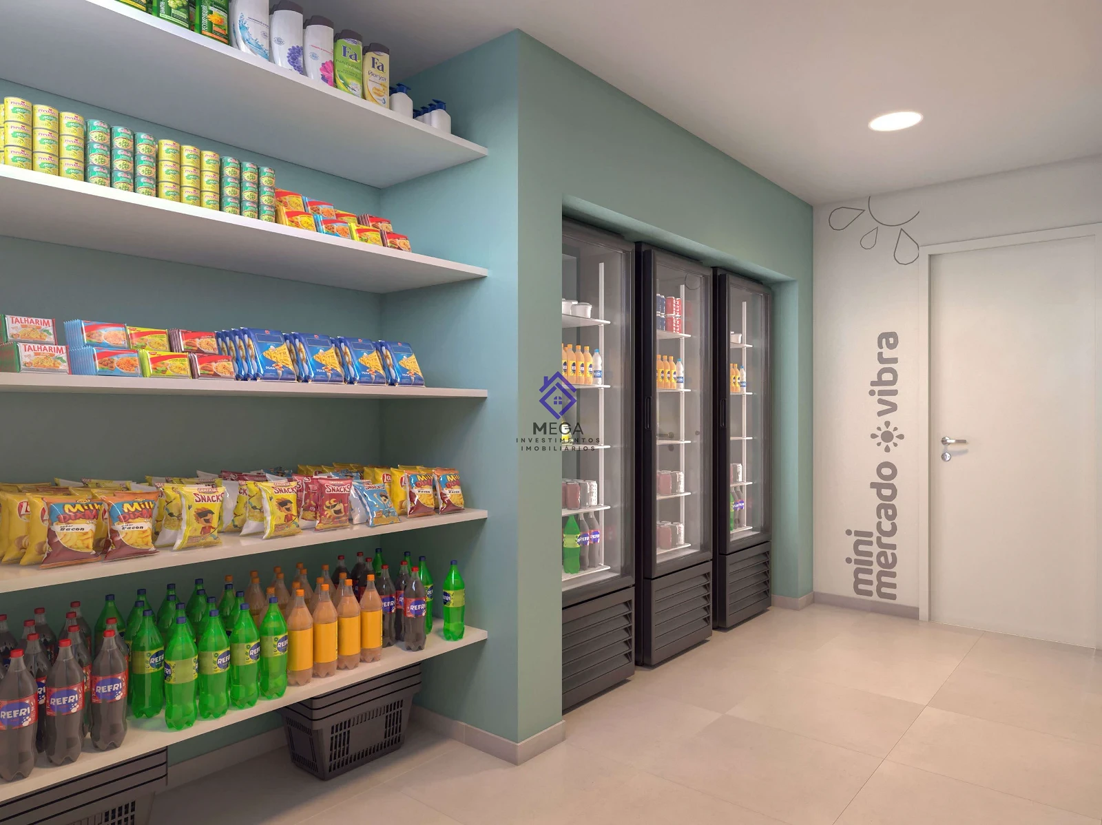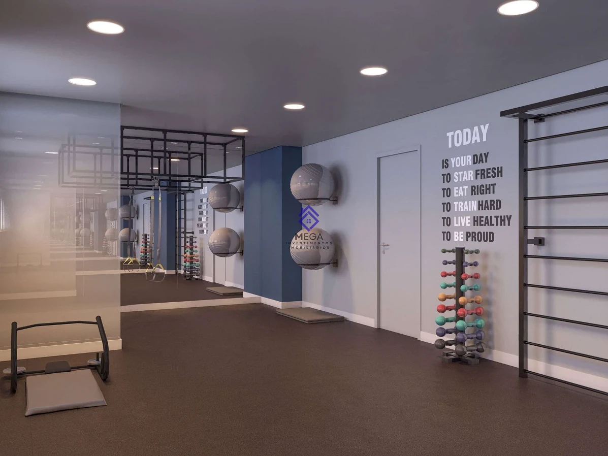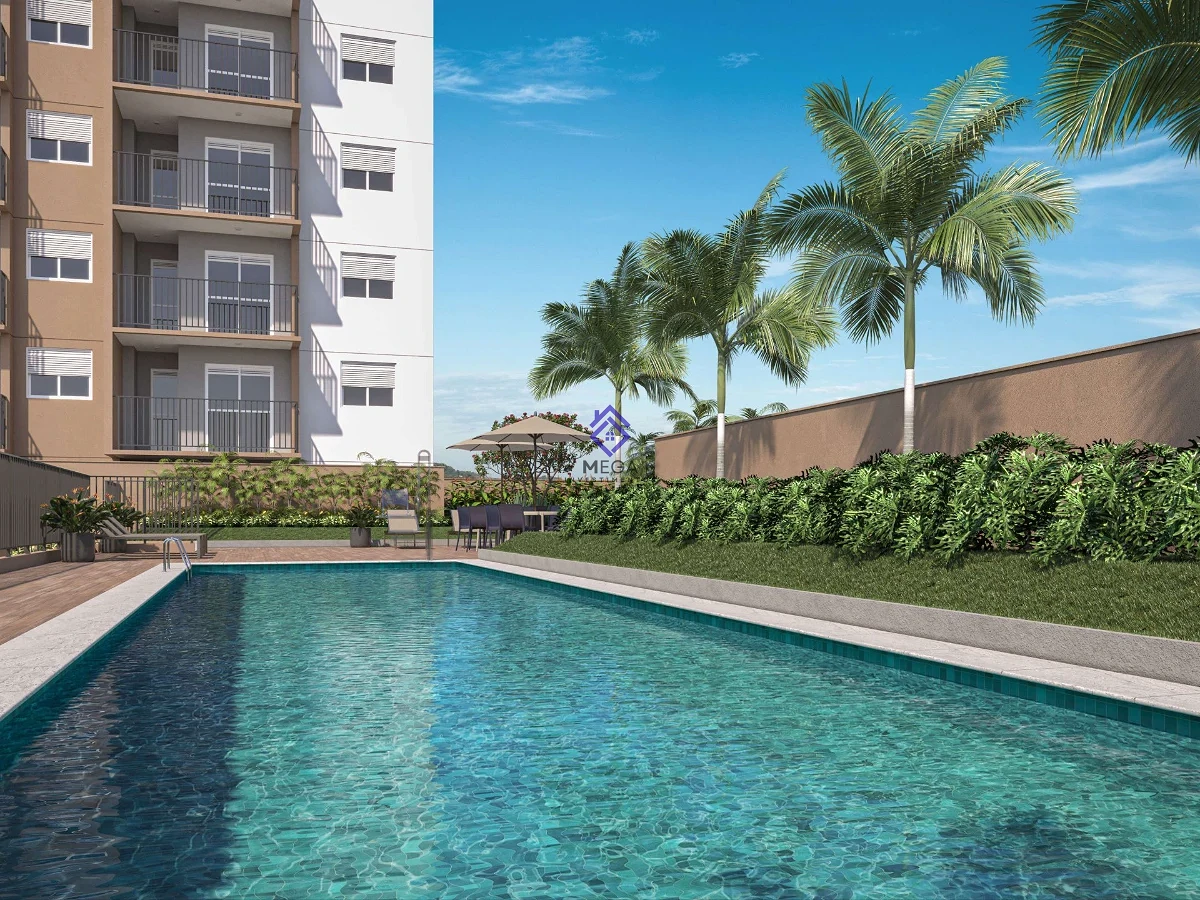 O condomínio fechado conta com infraestrutura completa incluindo piscina, academia, playground, salão de festas e sistema de segurança com câmeras. O empreendimento possui elevador e área total de 10.707,22m², garantindo amplo espaço de lazer e convivência para os moradores.