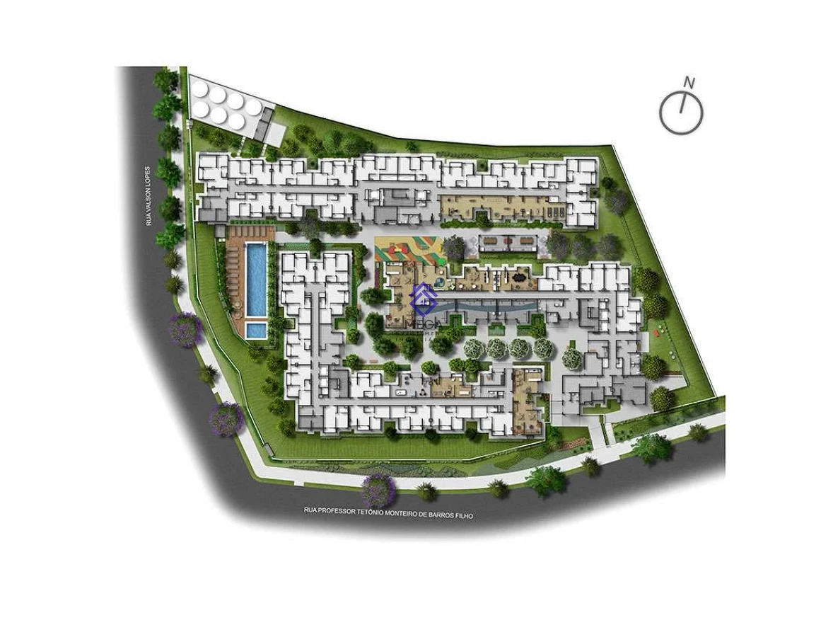 O condomínio fechado Parque Cidade Universitária conta com infraestrutura completa incluindo piscina, academia, elevador e ampla área de lazer. O empreendimento oferece segurança e espaços de convivência em um terreno total de 19.982,32m². A estrutura proporciona qualidade de vida e comodidade para toda a família.