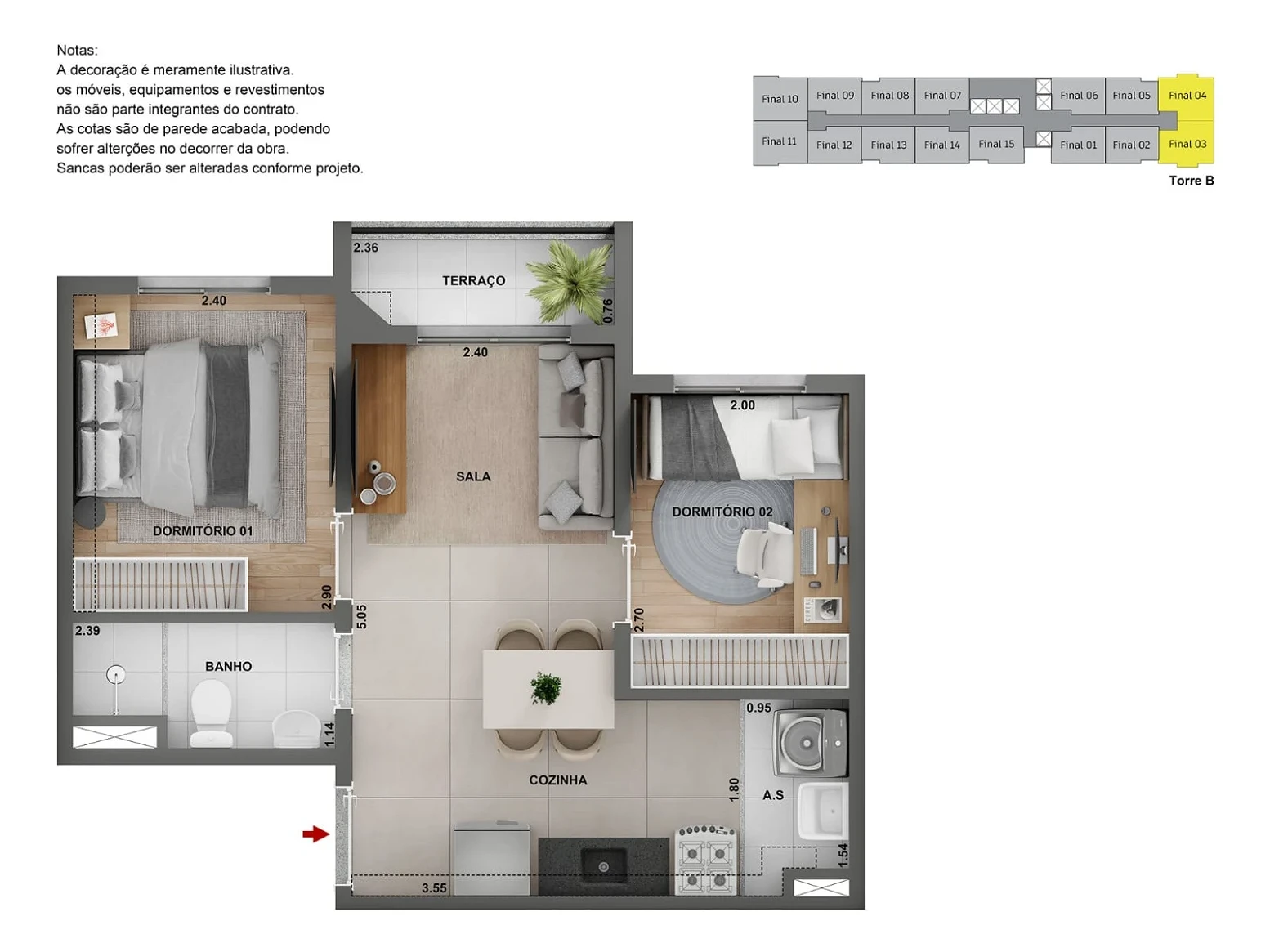 Apartamento em São Paulo com 34m² e entrega em 2028. O imóvel possui 2 dormitórios bem distribuídos, 1 banheiro completo e 1 vaga de garagem coberta. Apartamento compacto com acabamentos modernos e planta otimizada para máximo aproveitamento dos espaços.